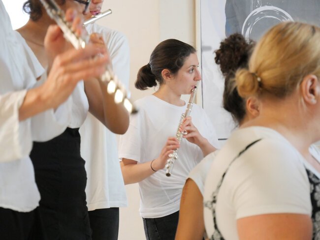 Le conservatoire de Sevran, ce sont des élèves motivés et des professeurs qui le sont tout autant. Dernier exemple en date, le beau projet « 1001 flûtes » auquel a participé en 2018-2019 la professeure de flûte Christine Bureau et ses élèves. Ce projet visait à réunir des flûtistes des conservatoires des Hauts-de-Seine, Seine-Saint-Denis et Val-de-Marne pour un immense concert le 9 juin 2019 à la Philharmonie de Paris. « J’ai tout de suite été emballée, j’ai trouvé que c’était un projet génial même si c’était assez lourd à porter », nous confie Christine Bureau. Ses dix-sept élèves en flûte traversière ont travaillé toute l’année sur les neuf morceaux du concert : un répertoire très varié allant des musiques traditionnelles irlandaises au tango, en passant par la musique contemporaine, la chanson coréenne ou le boléro de Ravel. L’organisation des répétitions ne fut pas chose aisée, les élèves de Christine étant de tous les âges (adultes et enfants à partir de 10 ans) et de tous les niveaux : « Sur les neuf morceaux, certains étaient trop difficiles pour les plus jeunes, j’ai donc dû adapter les partitions. »