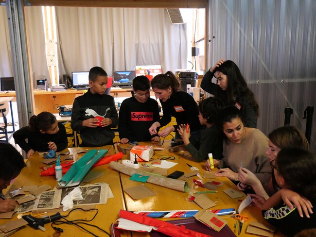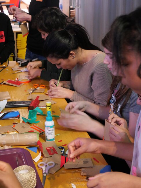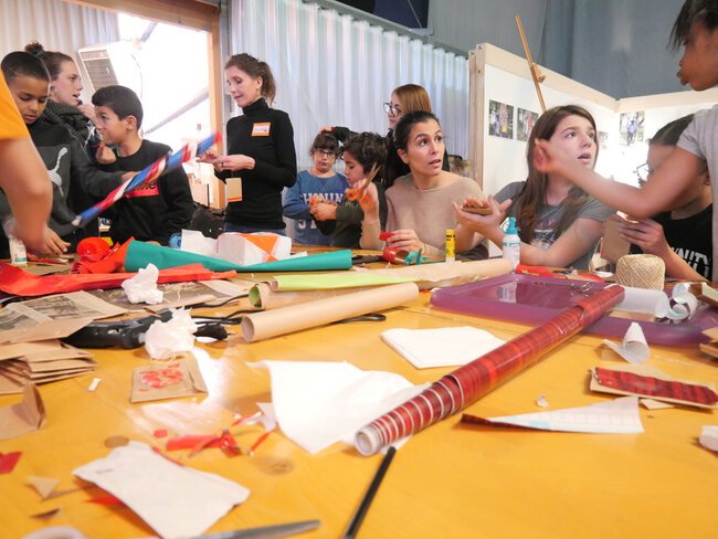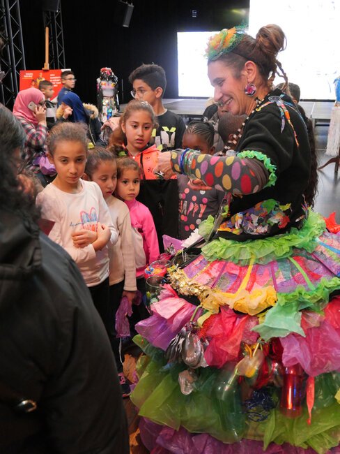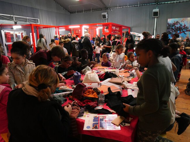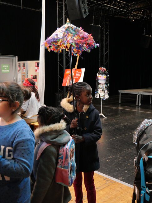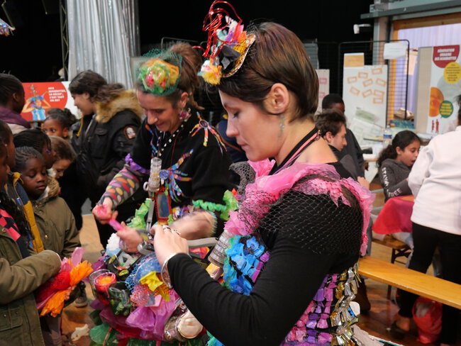 Les seize adultes et 32 enfants participant aux ateliers ont réalisé des costumes et objets à partir d'éléments de récupération.