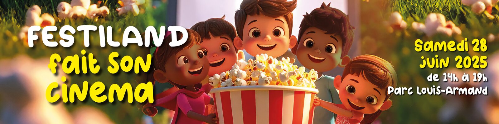Rendez-vous le 28 juin au parc Louis-Armand pour la quatrième édition de Festi'land, un événement festif proposé par les centres de loisirs, le club loisirs, la Maison des découvertes et de la nature et les antennes jeunesse. De multiples activités pour tous les âges et toute la famille sur le thème du 7ème art : ateliers sportifs, artistiques et scientifiques, jeux, spectacles et exposition des travaux des enfants… Et bien sûr, distribution gratuite de pop’corns pour les enfants au goûter !
