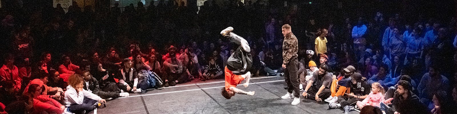 À même le sol et dans une ambiance survoltée, des danseurs venus des quatre coins du monde s’affrontent en un contre un.