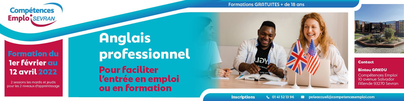 Compétences Emploi organise 2 nouvelles formations gratuites pour faciliter l'entrée en emploi ou en formation : anglais professionnel niveau débutant ou anglais professionnel niveau intermédiaire.