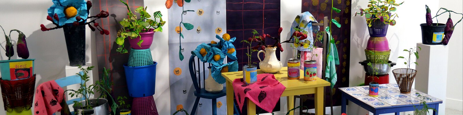 L’année dernière, les enfants de 4 à 7 ans de l’atelier Découverte de l’atelier Poulbot ont réalisé une œuvre collective en s’inspirant d’Erik Mattijssen. Cet artiste néerlandais, né en 1957, vit et travaille à Amsterdam. Ses œuvres ont pour thème les objets simples du quotidien qu’il associe dans des accumulations joyeuses, poétiques et colorées. « L’univers d’Erik Mattijssen a été prétexte à la découverte de techniques diverses : papier maché, papier froissé, dessin, peinture, composition géométrique, linogravure, estampage, décor sur céramique, pastel, encre... », expliquent Yolène Fusberg et Mylène Mériguet-Baillet, les deux professionnelles des arts plastiques qui mènent les ateliers. « Dans les tableaux d’Erik Mattijssen il y a : des plantes dans des pots, de beaux carreaux de ciments, des papiers peints jolis, des sculptures qui montent, des fleurs qui descendent, du linge qui sèche... », poursuivent-elles. Le 14 juin dernier, l’œuvre a été présentée à l’occasion de la traditionnelle exposition de fin d’année du département arts plastiques à l’espace François-Mauriac.