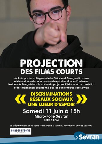 Samedi 11 juin à 15h, la Micro-Folie accueille la projection des films courts "Discriminations", "Réseaux sociaux" et "Une lueur d'espoir".