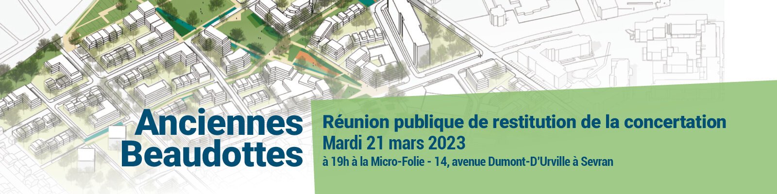 La réunion publique de restitution de la concertation sur la rénovation urbaine des Anciennes Beaudottes se tiendra mardi 21 mars 2023 à 19h à la Micro-Folie (14, avenue Dumont-D’Urville) à Sevran.