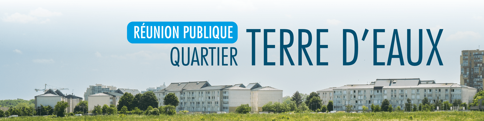 La réunion publique de présentation du nouveau quartier Terre d'Eaux aura lieu mercredi 31 janvier 2024 à 19h30 à la salle des fêtes (9 rue Gabriel-Péri). En présence de Grand Paris Aménagement. Ouvert à toutes et à tous