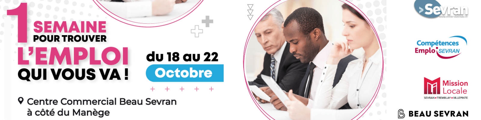 La semaine de l'emploi organisée par Compétences Emploi et la Mission Locale se tiendra au centre Commercial BeauSevran du 18 au 22 octobre 2021.