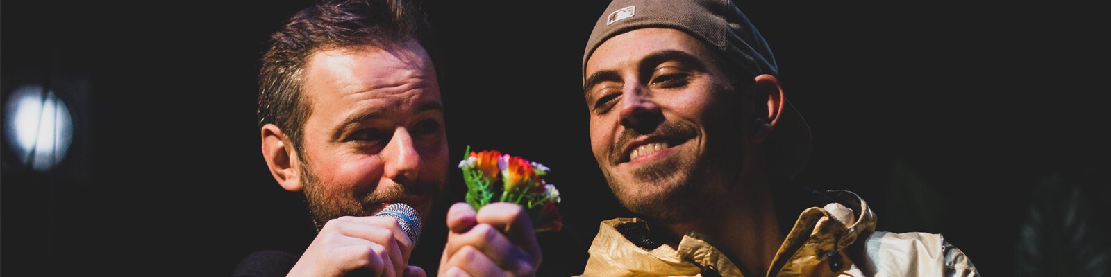 Après le succès de leur premier spectacle Quand je serai petit (Prix Talent Adami Jeune Public 2015), le duo Tony Melvil et Usmar propose à nouveau un concert augmenté, une forme hybride dans laquelle leurs deux voix s’assemblent et appellent à l’indiscipline. La dualité entre les univers des deux musiciens est un des points de départ de l’écriture. L’un déploie un dispositif musical high-tech, l’autre réinvente l’art de jouer du violon.