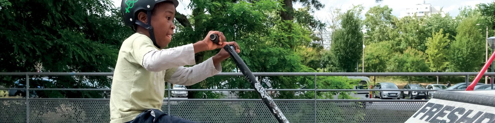 Sports de glisse, BMX, skate, trottinette, saut en BMX sur airbag et rollers. Initiation avec pistes de bosses, piste de skate park, démonstration par un champion de la discipline. Prêt de BMX et de matériel.